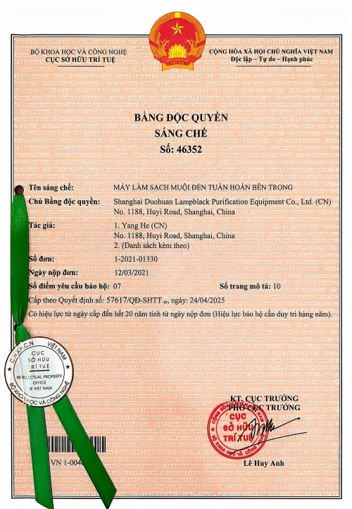 全球知識產權布局再落關鍵一子:[內循環式油煙凈化機]技術 喜獲越南發明專利授權