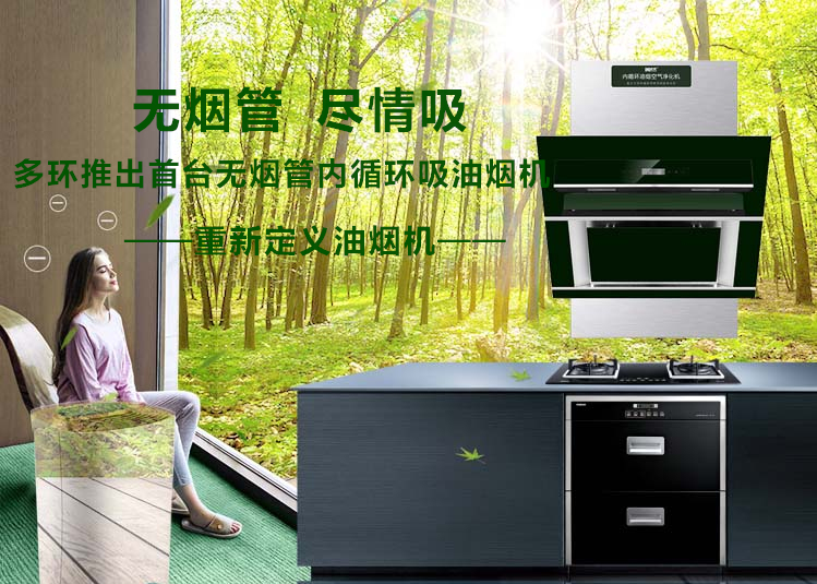 無煙管內循環吸油煙機是采用高科技手段將廚房及烹飪場所產生的油煙及有害氣體在室內進行凈化處理的一種電器設備。目前國內、國際尚無該種設備的先例。上海多環油煙凈化設備有限公司科研團隊從解決社會大氣污染及凈化家庭室內空氣出發經過多年的研究和實驗開發生產出了一種適合國人烹飪需要的內循環式油煙凈化機,它的主要特點是采用吸排凈化一體機的形式將烹飪產生的油脂、煙顆粒物及有害氣體(醛、苯、VOC等)、異味(辣、臭、酸味等)和有害細菌在室內進行凈化處理,實現了廚房油煙向室外不排放,室內室外無污染,解決了廚房油煙氣體排放污染環境的世界性難題。本公司研發生產的無管式油煙凈化機是不用煙管對外排放的油煙凈化設備,采用吸排凈化一體機的形式將烹飪產生的油脂、煙顆粒物及有害氣體(醛、苯、VOC等)、異味(辣、臭、酸味等)和有害細菌在室內進行凈化處理的廚電產品。